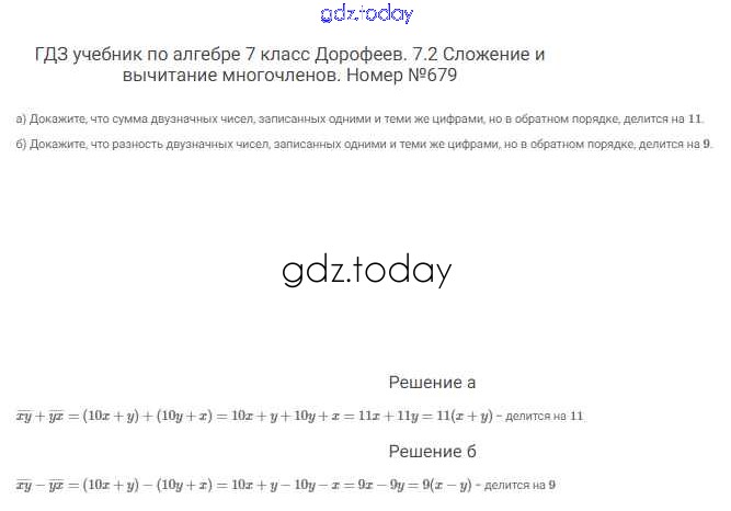 На страницах сайта gdz.today вы найдете учебный и вспомогательный материал, направленный на улучшения знаний школьной программы. ГДЗ - онлайн мир знаний Решение к упражнениям 679 Учебнику по Алгебре для 7 класса Дорофеев, Суворова Просвещение Академический школьный учебник 2020