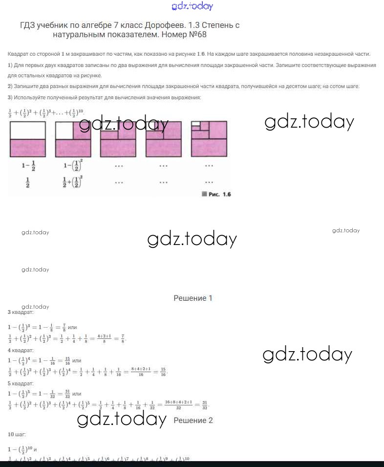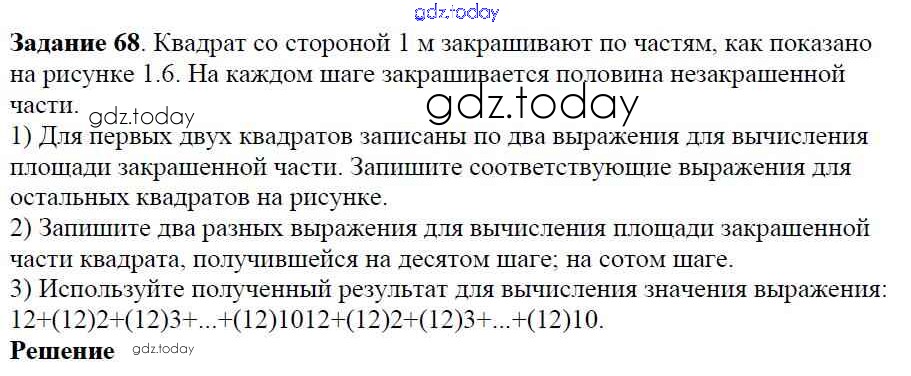 На страницах сайта gdz.today вы найдете учебный и вспомогательный материал, направленный на улучшения знаний школьной программы. ГДЗ - онлайн мир знаний Решение к упражнениям 68 Учебнику по Алгебре для 7 класса Дорофеев, Суворова Просвещение Академический школьный учебник 2020