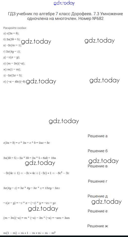На страницах сайта gdz.today вы найдете учебный и вспомогательный материал, направленный на улучшения знаний школьной программы. ГДЗ - онлайн мир знаний Решение к упражнениям 682 Учебнику по Алгебре для 7 класса Дорофеев, Суворова Просвещение Академический школьный учебник 2020