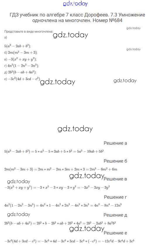 На страницах сайта gdz.today вы найдете учебный и вспомогательный материал, направленный на улучшения знаний школьной программы. ГДЗ - онлайн мир знаний Решение к упражнениям 684 Учебнику по Алгебре для 7 класса Дорофеев, Суворова Просвещение Академический школьный учебник 2020