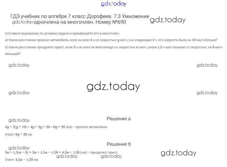 На страницах сайта gdz.today вы найдете учебный и вспомогательный материал, направленный на улучшения знаний школьной программы. ГДЗ - онлайн мир знаний Решение к упражнениям 690 Учебнику по Алгебре для 7 класса Дорофеев, Суворова Просвещение Академический школьный учебник 2020