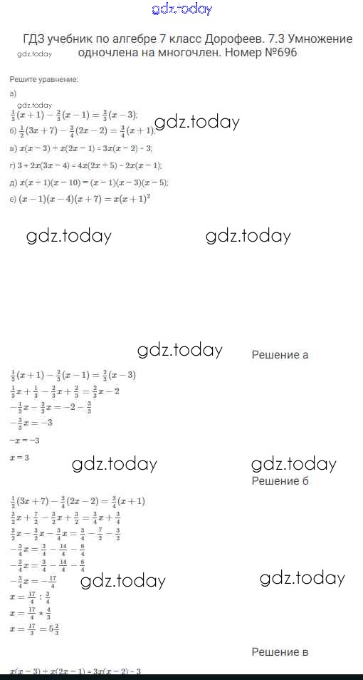 На страницах сайта gdz.today вы найдете учебный и вспомогательный материал, направленный на улучшения знаний школьной программы. ГДЗ - онлайн мир знаний Решение к упражнениям 696 Учебнику по Алгебре для 7 класса Дорофеев, Суворова Просвещение Академический школьный учебник 2020