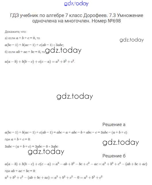 На страницах сайта gdz.today вы найдете учебный и вспомогательный материал, направленный на улучшения знаний школьной программы. ГДЗ - онлайн мир знаний Решение к упражнениям 698 Учебнику по Алгебре для 7 класса Дорофеев, Суворова Просвещение Академический школьный учебник 2020