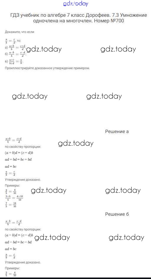 На страницах сайта gdz.today вы найдете учебный и вспомогательный материал, направленный на улучшения знаний школьной программы. ГДЗ - онлайн мир знаний Решение к упражнениям 700 Учебнику по Алгебре для 7 класса Дорофеев, Суворова Просвещение Академический школьный учебник 2020