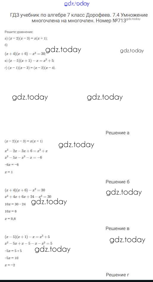 На страницах сайта gdz.today вы найдете учебный и вспомогательный материал, направленный на улучшения знаний школьной программы. ГДЗ - онлайн мир знаний Решение к упражнениям 713 Учебнику по Алгебре для 7 класса Дорофеев, Суворова Просвещение Академический школьный учебник 2020
