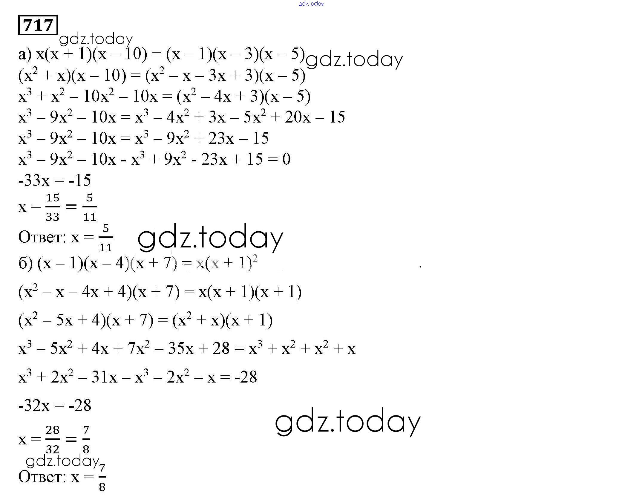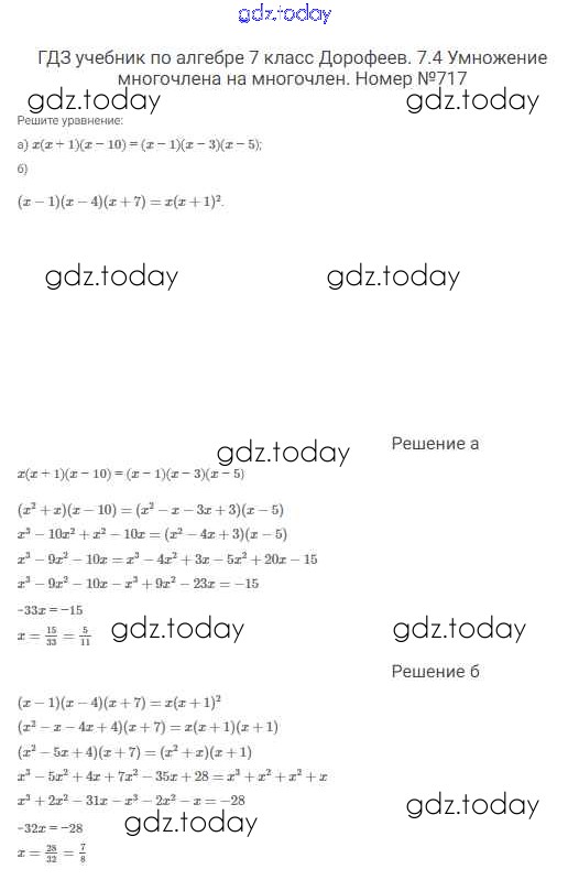 Ответы к Решение к упражнениям 717 Учебнику по Алгебре для 7 класса Дорофеев, Суворова Просвещение Академический школьный учебник 2020