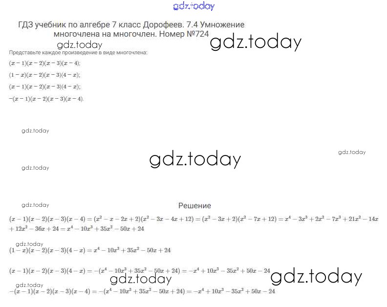 На страницах сайта gdz.today вы найдете учебный и вспомогательный материал, направленный на улучшения знаний школьной программы. ГДЗ - онлайн мир знаний Решение к упражнениям 724 Учебнику по Алгебре для 7 класса Дорофеев, Суворова Просвещение Академический школьный учебник 2020