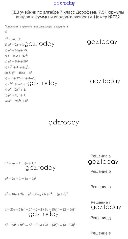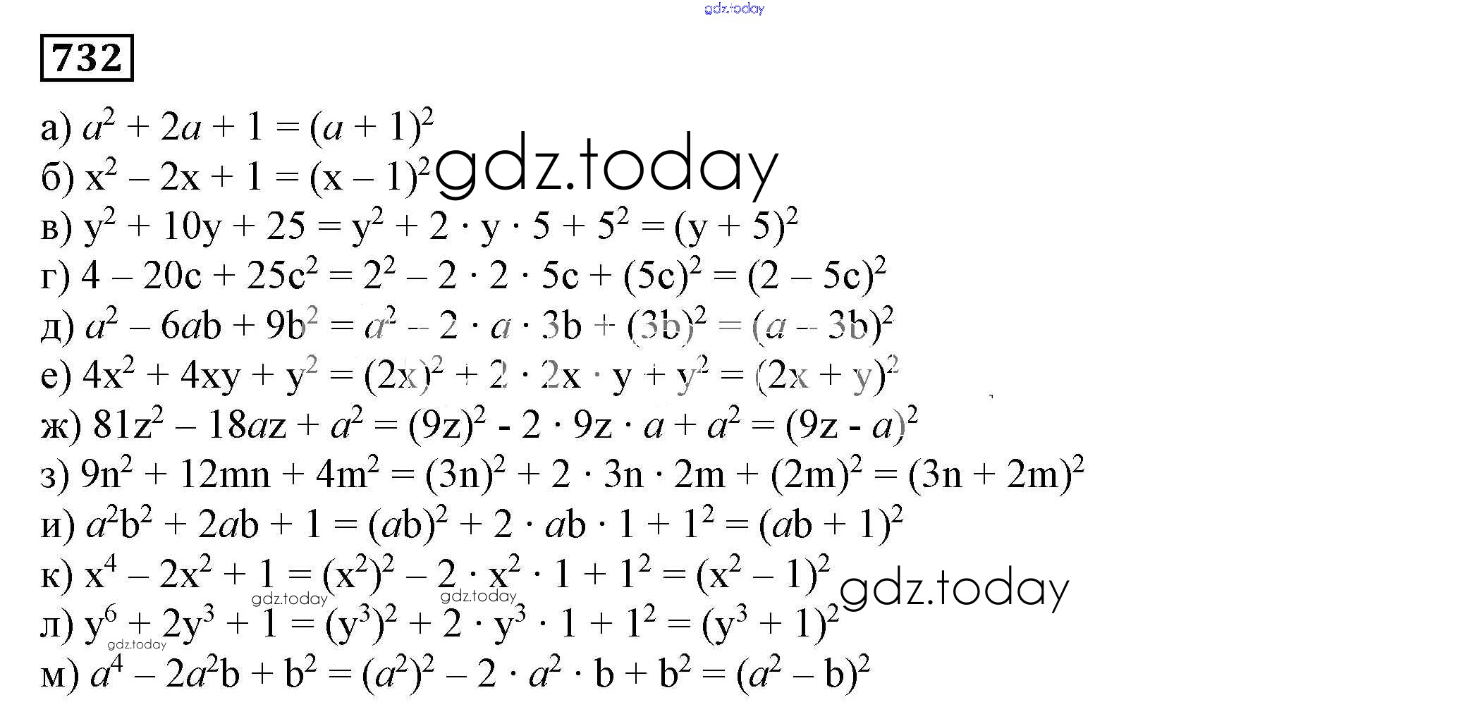 На страницах сайта gdz.today вы найдете учебный и вспомогательный материал, направленный на улучшения знаний школьной программы. ГДЗ - онлайн мир знаний Решение к упражнениям 732 Учебнику по Алгебре для 7 класса Дорофеев, Суворова Просвещение Академический школьный учебник 2020