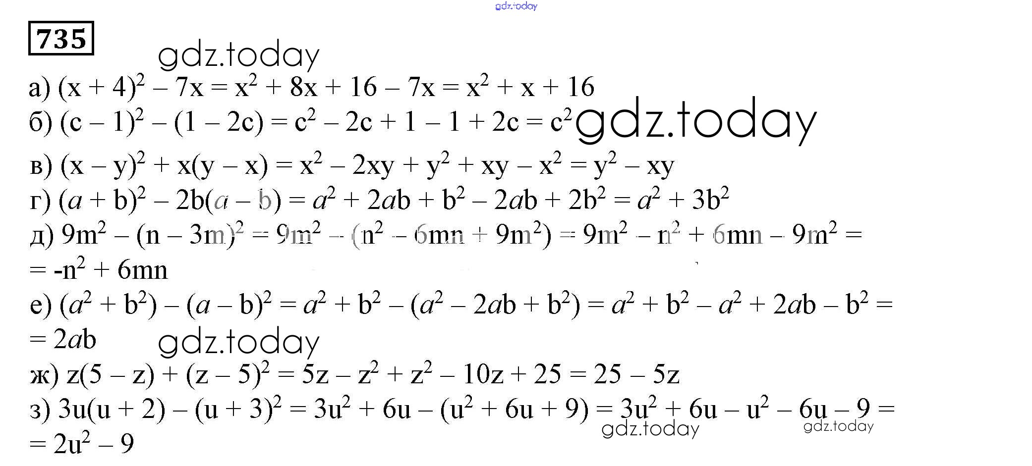 Ответы к Решение к упражнениям 735 Учебнику по Алгебре для 7 класса Дорофеев, Суворова Просвещение Академический школьный учебник 2020