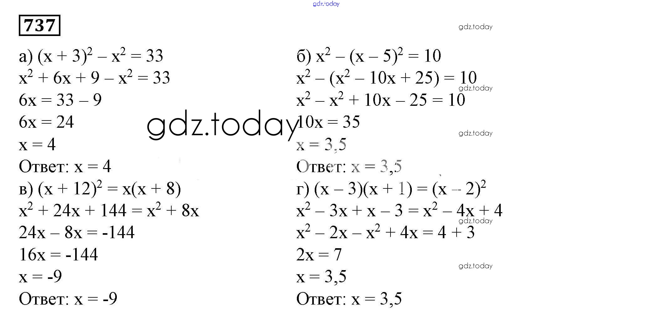 Ответы к Решение к упражнениям 737 Учебнику по Алгебре для 7 класса Дорофеев, Суворова Просвещение Академический школьный учебник 2020