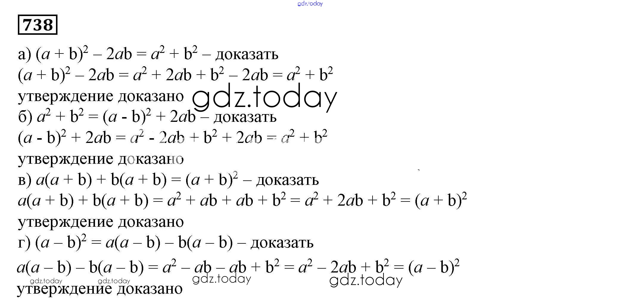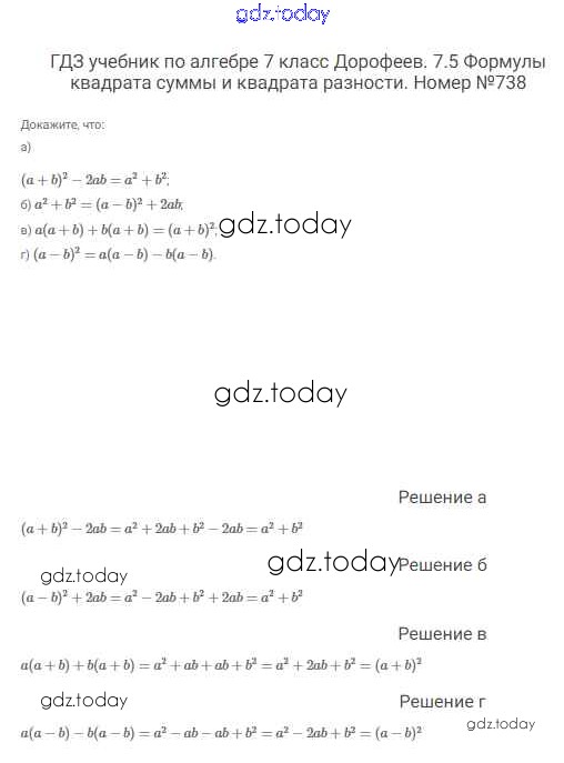 На страницах сайта gdz.today вы найдете учебный и вспомогательный материал, направленный на улучшения знаний школьной программы. ГДЗ - онлайн мир знаний Решение к упражнениям 738 Учебнику по Алгебре для 7 класса Дорофеев, Суворова Просвещение Академический школьный учебник 2020