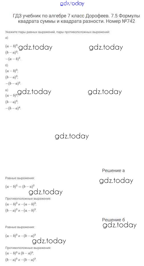 На страницах сайта gdz.today вы найдете учебный и вспомогательный материал, направленный на улучшения знаний школьной программы. ГДЗ - онлайн мир знаний Решение к упражнениям 742 Учебнику по Алгебре для 7 класса Дорофеев, Суворова Просвещение Академический школьный учебник 2020