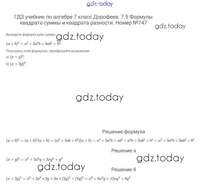На страницах сайта gdz.today вы найдете учебный и вспомогательный материал, направленный на улучшения знаний школьной программы. ГДЗ - онлайн мир знаний Решение к упражнениям 747 Учебнику по Алгебре для 7 класса Дорофеев, Суворова Просвещение Академический школьный учебник 2020