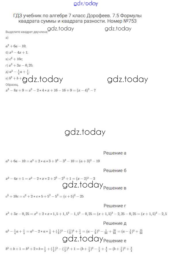 Ответы к Решение к упражнениям 753 Учебнику по Алгебре для 7 класса Дорофеев, Суворова Просвещение Академический школьный учебник 2020