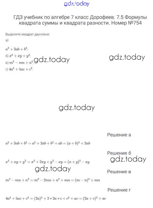 На страницах сайта gdz.today вы найдете учебный и вспомогательный материал, направленный на улучшения знаний школьной программы. ГДЗ - онлайн мир знаний Решение к упражнениям 754 Учебнику по Алгебре для 7 класса Дорофеев, Суворова Просвещение Академический школьный учебник 2020