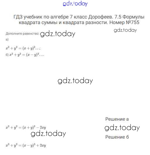 На страницах сайта gdz.today вы найдете учебный и вспомогательный материал, направленный на улучшения знаний школьной программы. ГДЗ - онлайн мир знаний Решение к упражнениям 755 Учебнику по Алгебре для 7 класса Дорофеев, Суворова Просвещение Академический школьный учебник 2020