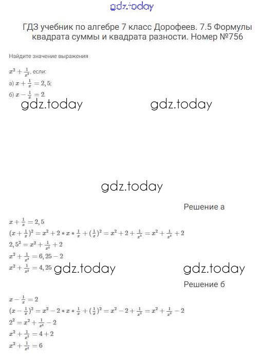 На страницах сайта gdz.today вы найдете учебный и вспомогательный материал, направленный на улучшения знаний школьной программы. ГДЗ - онлайн мир знаний Решение к упражнениям 756 Учебнику по Алгебре для 7 класса Дорофеев, Суворова Просвещение Академический школьный учебник 2020