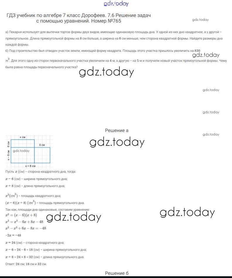 Ответы к Решение к упражнениям 765 Учебнику по Алгебре для 7 класса Дорофеев, Суворова Просвещение Академический школьный учебник 2020