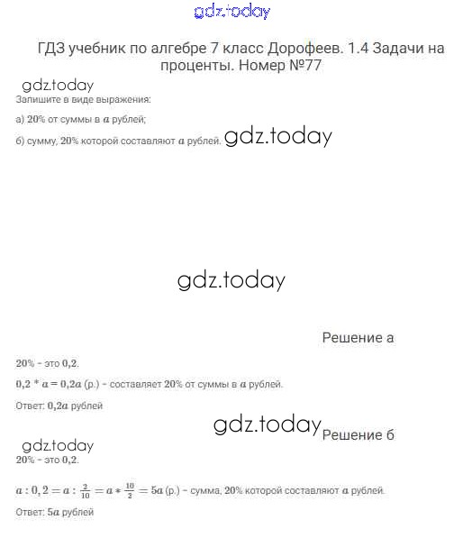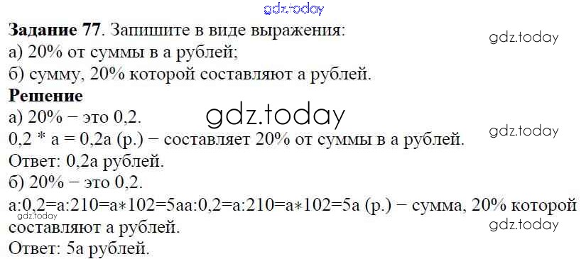 На страницах сайта gdz.today вы найдете учебный и вспомогательный материал, направленный на улучшения знаний школьной программы. ГДЗ - онлайн мир знаний Решение к упражнениям 77 Учебнику по Алгебре для 7 класса Дорофеев, Суворова Просвещение Академический школьный учебник 2020