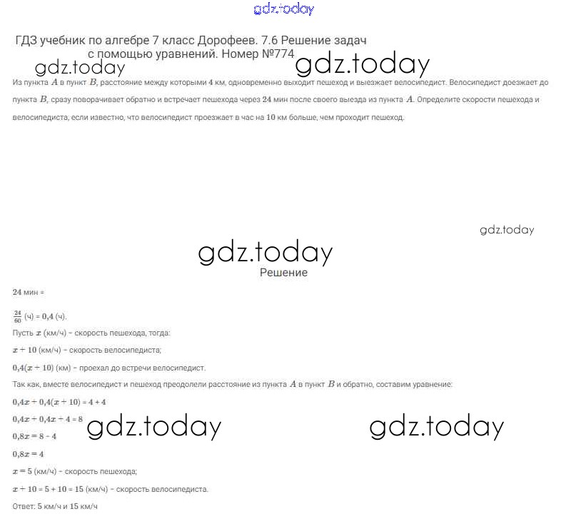 Ответы к Решение к упражнениям 774 Учебнику по Алгебре для 7 класса Дорофеев, Суворова Просвещение Академический школьный учебник 2020