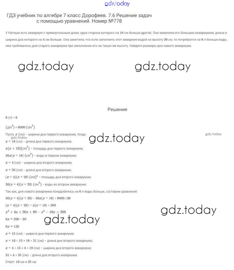 Ответы к Решение к упражнениям 778 Учебнику по Алгебре для 7 класса Дорофеев, Суворова Просвещение Академический школьный учебник 2020