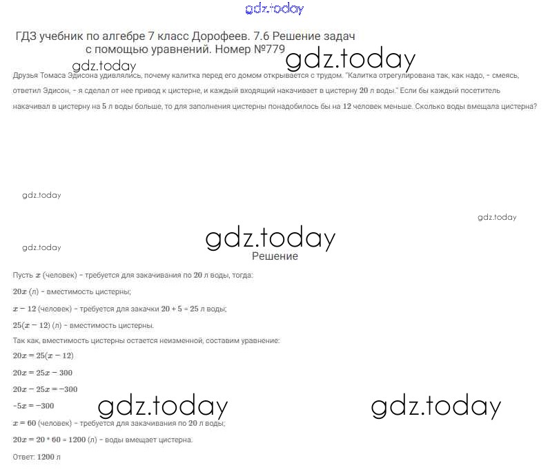 Ответы к Решение к упражнениям 779 Учебнику по Алгебре для 7 класса Дорофеев, Суворова Просвещение Академический школьный учебник 2020