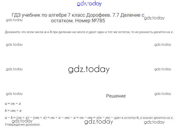 На страницах сайта gdz.today вы найдете учебный и вспомогательный материал, направленный на улучшения знаний школьной программы. ГДЗ - онлайн мир знаний Решение к упражнениям 785 Учебнику по Алгебре для 7 класса Дорофеев, Суворова Просвещение Академический школьный учебник 2020