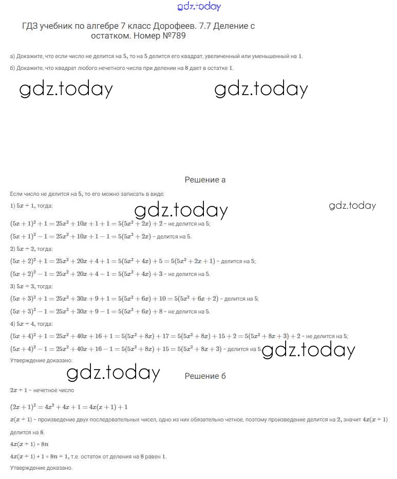 На страницах сайта gdz.today вы найдете учебный и вспомогательный материал, направленный на улучшения знаний школьной программы. ГДЗ - онлайн мир знаний Решение к упражнениям 789 Учебнику по Алгебре для 7 класса Дорофеев, Суворова Просвещение Академический школьный учебник 2020