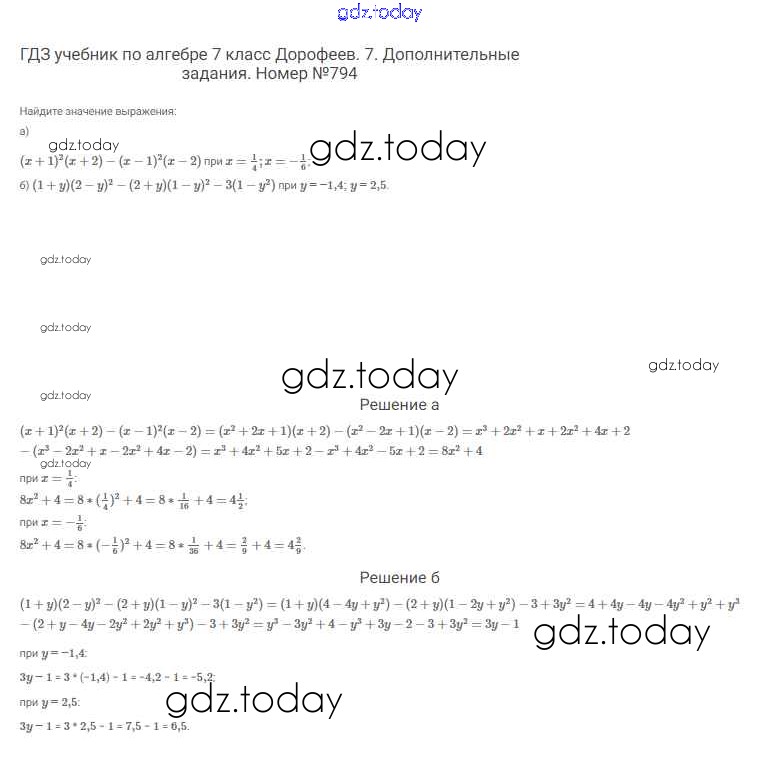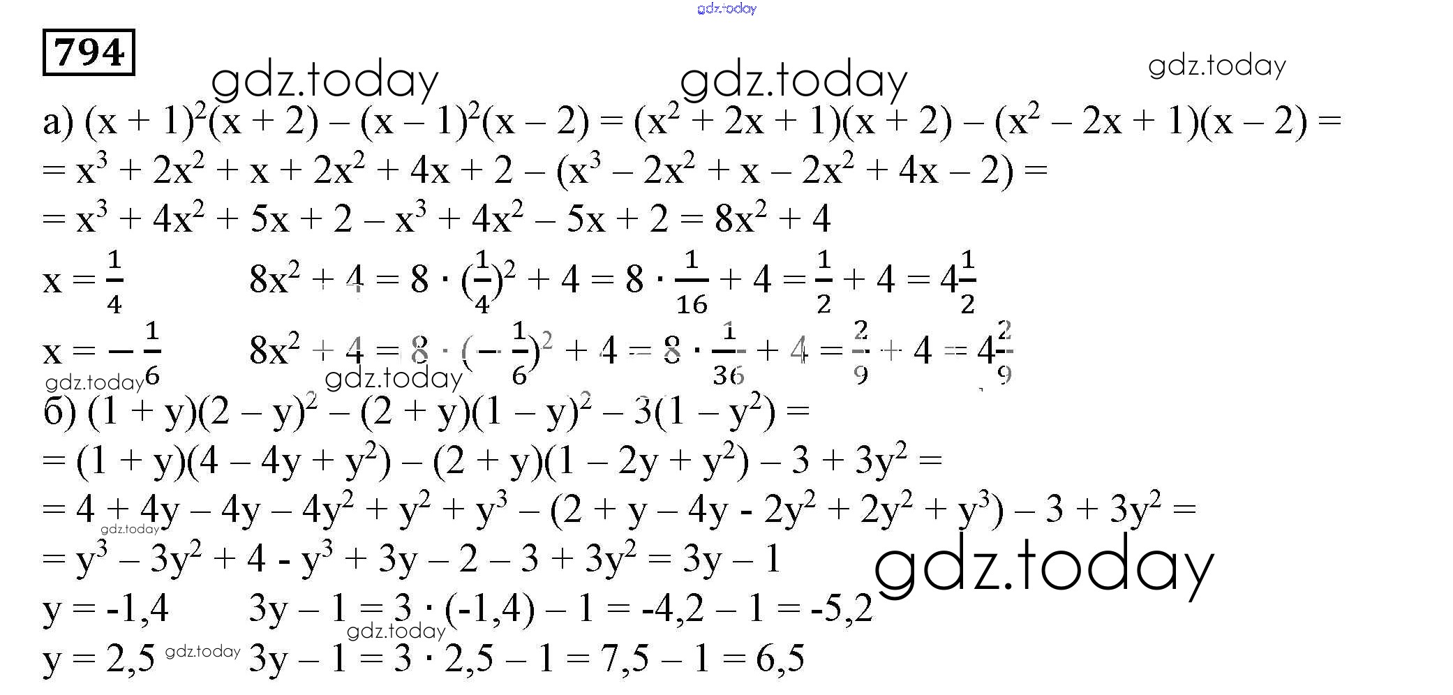На страницах сайта gdz.today вы найдете учебный и вспомогательный материал, направленный на улучшения знаний школьной программы. ГДЗ - онлайн мир знаний Решение к упражнениям 794 Учебнику по Алгебре для 7 класса Дорофеев, Суворова Просвещение Академический школьный учебник 2020