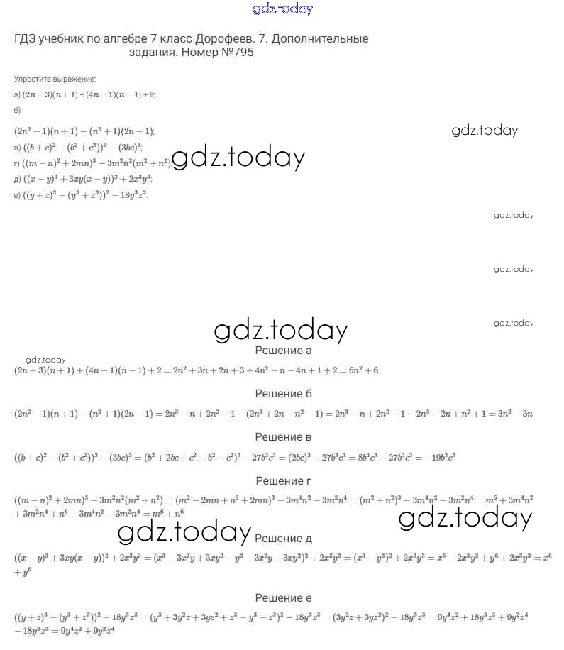 На страницах сайта gdz.today вы найдете учебный и вспомогательный материал, направленный на улучшения знаний школьной программы. ГДЗ - онлайн мир знаний Решение к упражнениям 795 Учебнику по Алгебре для 7 класса Дорофеев, Суворова Просвещение Академический школьный учебник 2020