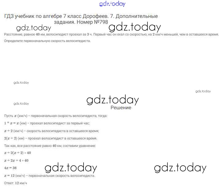 На страницах сайта gdz.today вы найдете учебный и вспомогательный материал, направленный на улучшения знаний школьной программы. ГДЗ - онлайн мир знаний Решение к упражнениям 798 Учебнику по Алгебре для 7 класса Дорофеев, Суворова Просвещение Академический школьный учебник 2020