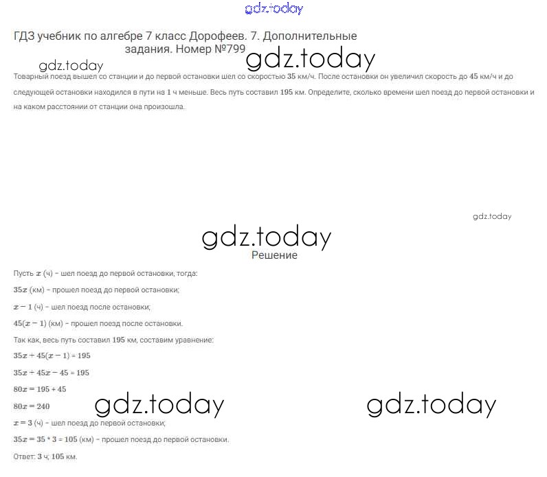 Ответы к Решение к упражнениям 799 Учебнику по Алгебре для 7 класса Дорофеев, Суворова Просвещение Академический школьный учебник 2020