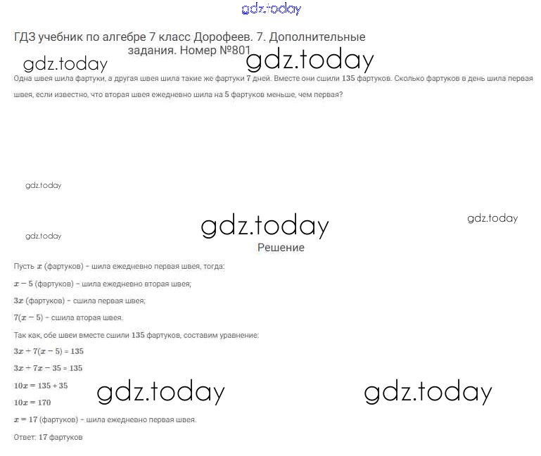 Ответы к Решение к упражнениям 801 Учебнику по Алгебре для 7 класса Дорофеев, Суворова Просвещение Академический школьный учебник 2020