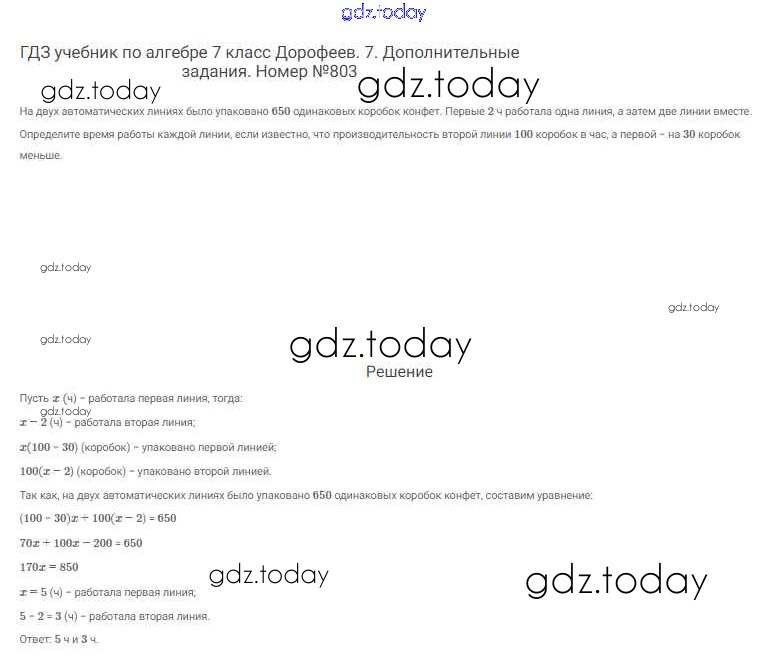 Ответы к Решение к упражнениям 803 Учебнику по Алгебре для 7 класса Дорофеев, Суворова Просвещение Академический школьный учебник 2020