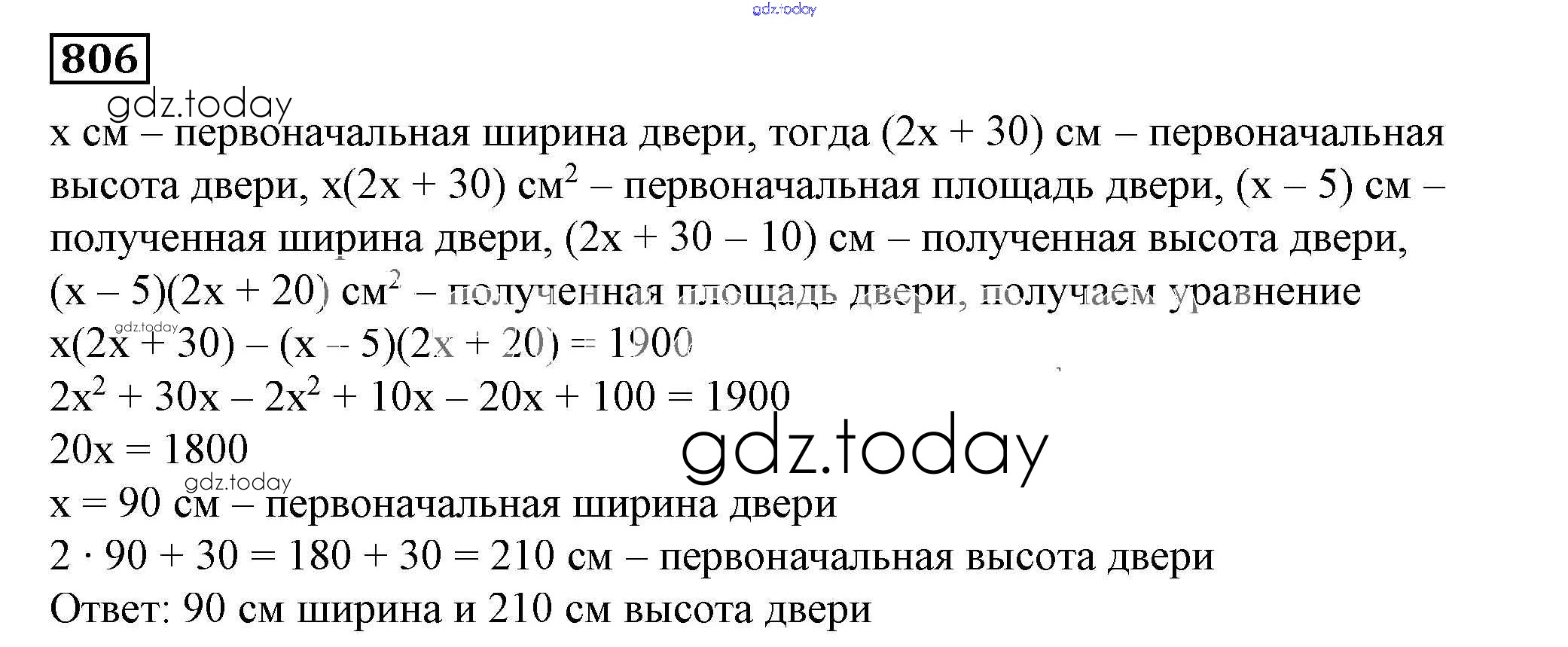 Ответы к Решение к упражнениям 806 Учебнику по Алгебре для 7 класса Дорофеев, Суворова Просвещение Академический школьный учебник 2020