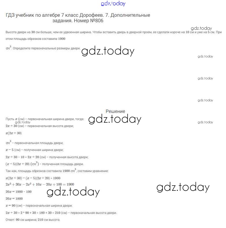 На страницах сайта gdz.today вы найдете учебный и вспомогательный материал, направленный на улучшения знаний школьной программы. ГДЗ - онлайн мир знаний Решение к упражнениям 806 Учебнику по Алгебре для 7 класса Дорофеев, Суворова Просвещение Академический школьный учебник 2020