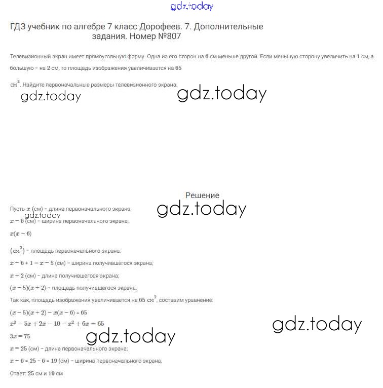Ответы к Решение к упражнениям 807 Учебнику по Алгебре для 7 класса Дорофеев, Суворова Просвещение Академический школьный учебник 2020