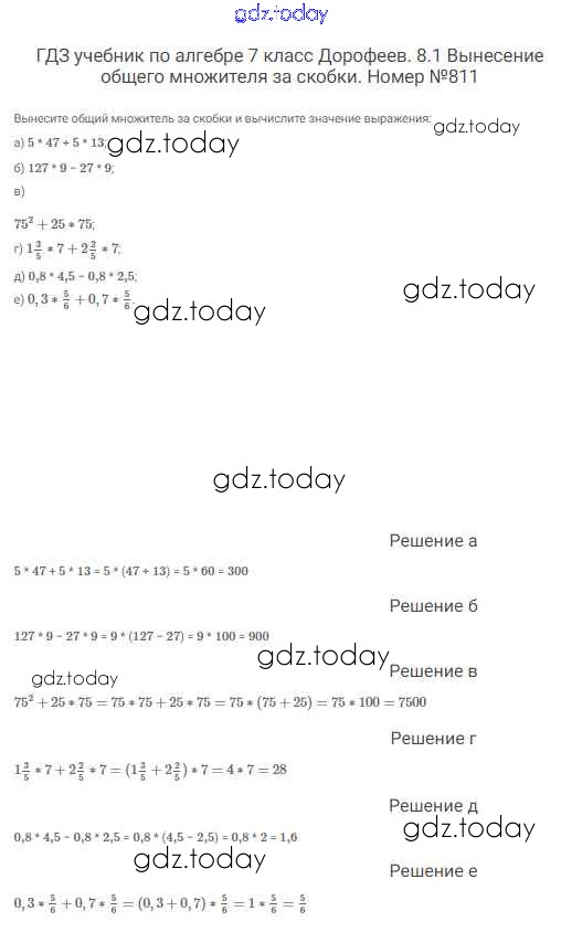 На страницах сайта gdz.today вы найдете учебный и вспомогательный материал, направленный на улучшения знаний школьной программы. ГДЗ - онлайн мир знаний Решение к упражнениям 811 Учебнику по Алгебре для 7 класса Дорофеев, Суворова Просвещение Академический школьный учебник 2020
