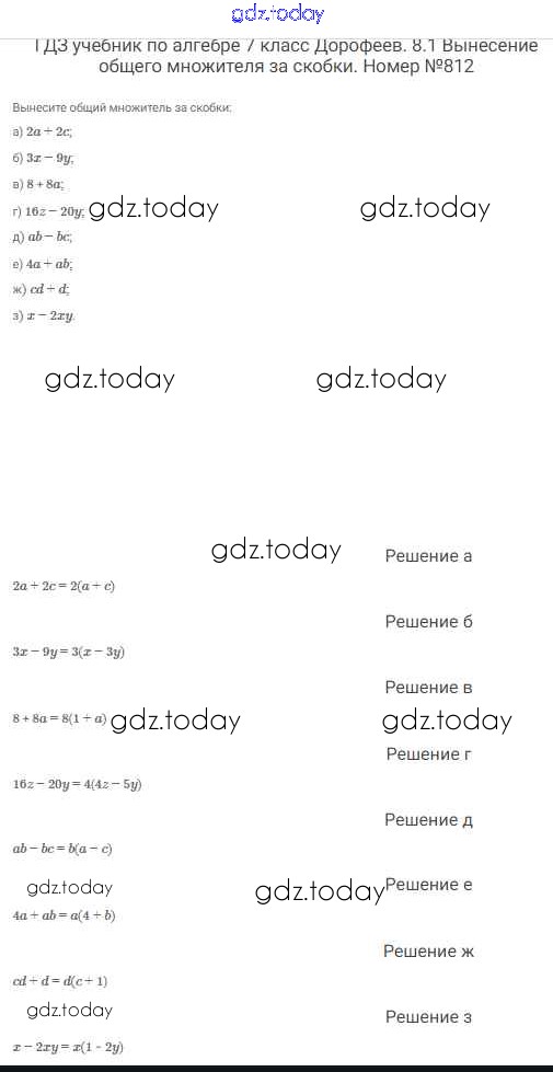 На страницах сайта gdz.today вы найдете учебный и вспомогательный материал, направленный на улучшения знаний школьной программы. ГДЗ - онлайн мир знаний Решение к упражнениям 812 Учебнику по Алгебре для 7 класса Дорофеев, Суворова Просвещение Академический школьный учебник 2020