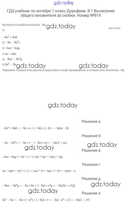 На страницах сайта gdz.today вы найдете учебный и вспомогательный материал, направленный на улучшения знаний школьной программы. ГДЗ - онлайн мир знаний Решение к упражнениям 819 Учебнику по Алгебре для 7 класса Дорофеев, Суворова Просвещение Академический школьный учебник 2020