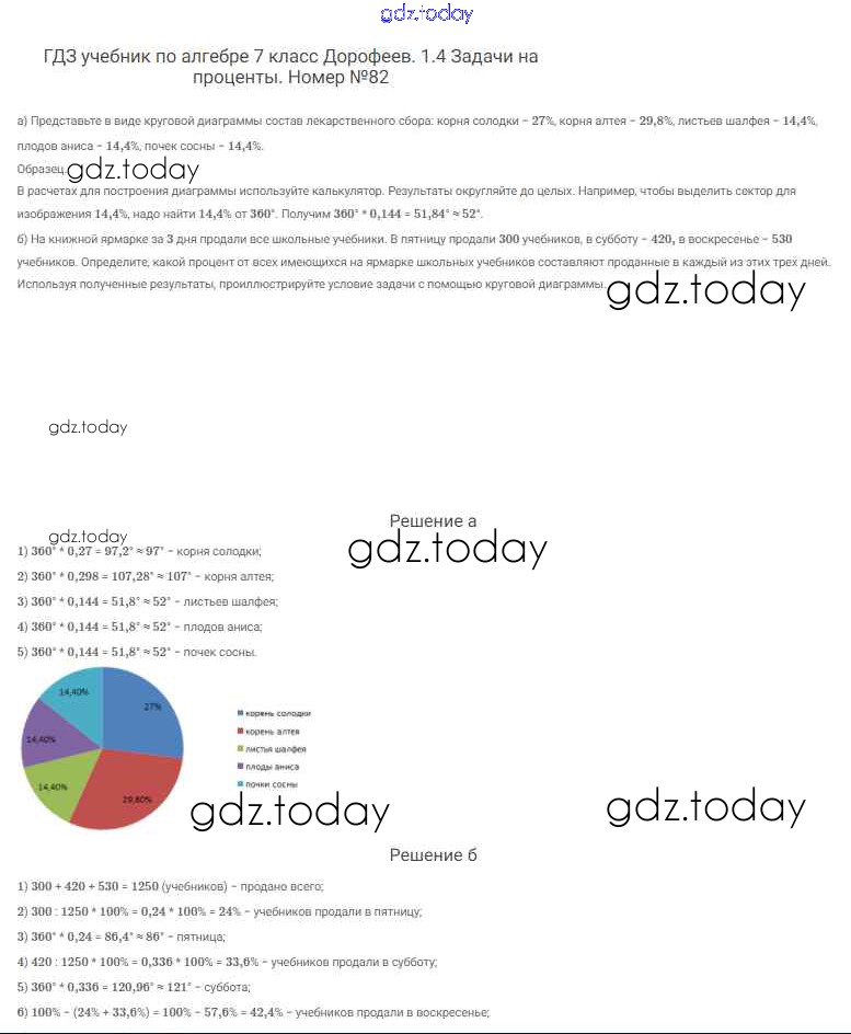 Ответы к Решение к упражнениям 82 Учебнику по Алгебре для 7 класса Дорофеев, Суворова Просвещение Академический школьный учебник 2020