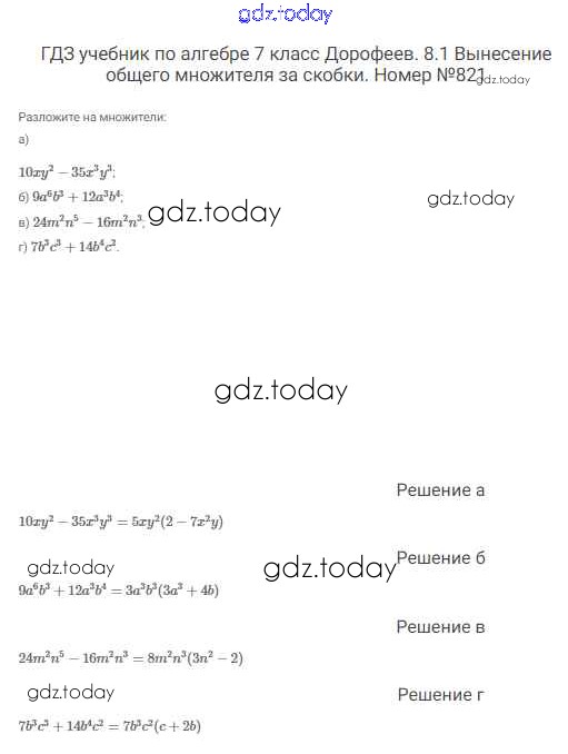 Ответы к Решение к упражнениям 821 Учебнику по Алгебре для 7 класса Дорофеев, Суворова Просвещение Академический школьный учебник 2020