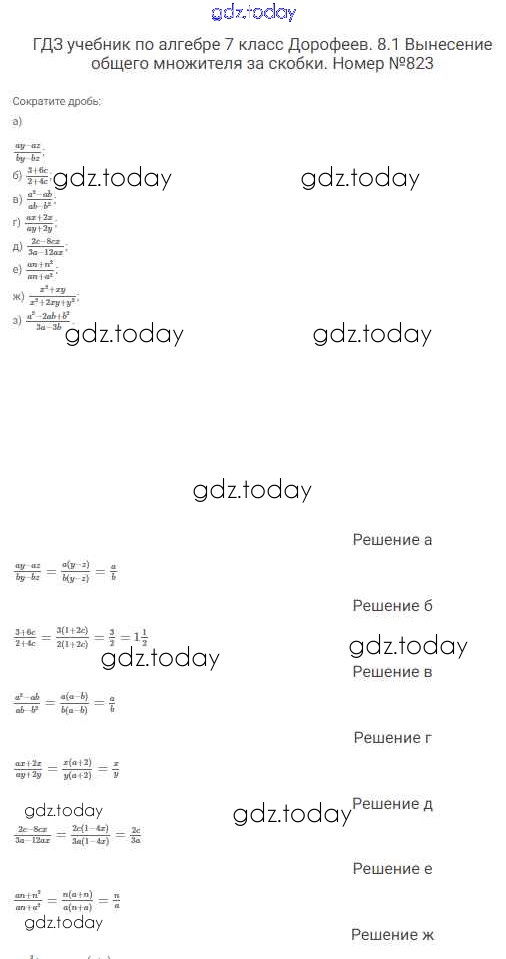 Ответы к Решение к упражнениям 823 Учебнику по Алгебре для 7 класса Дорофеев, Суворова Просвещение Академический школьный учебник 2020