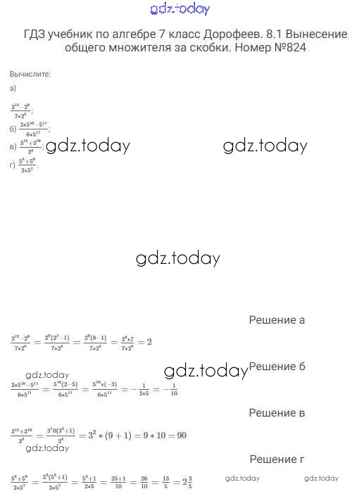 На страницах сайта gdz.today вы найдете учебный и вспомогательный материал, направленный на улучшения знаний школьной программы. ГДЗ - онлайн мир знаний Решение к упражнениям 824 Учебнику по Алгебре для 7 класса Дорофеев, Суворова Просвещение Академический школьный учебник 2020