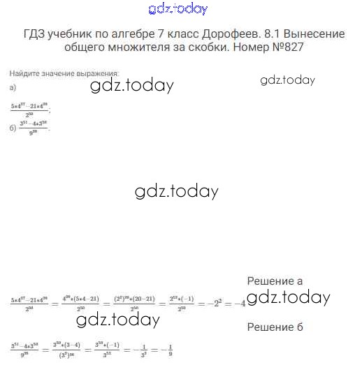 На страницах сайта gdz.today вы найдете учебный и вспомогательный материал, направленный на улучшения знаний школьной программы. ГДЗ - онлайн мир знаний Решение к упражнениям 827 Учебнику по Алгебре для 7 класса Дорофеев, Суворова Просвещение Академический школьный учебник 2020