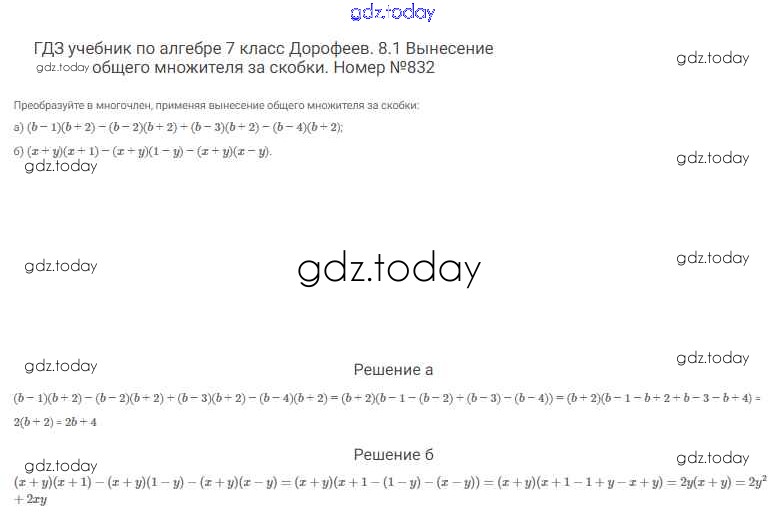 На страницах сайта gdz.today вы найдете учебный и вспомогательный материал, направленный на улучшения знаний школьной программы. ГДЗ - онлайн мир знаний Решение к упражнениям 832 Учебнику по Алгебре для 7 класса Дорофеев, Суворова Просвещение Академический школьный учебник 2020