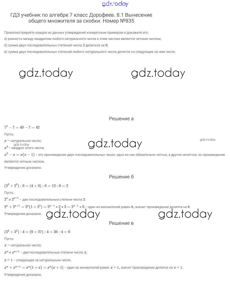 На страницах сайта gdz.today вы найдете учебный и вспомогательный материал, направленный на улучшения знаний школьной программы. ГДЗ - онлайн мир знаний Решение к упражнениям 835 Учебнику по Алгебре для 7 класса Дорофеев, Суворова Просвещение Академический школьный учебник 2020