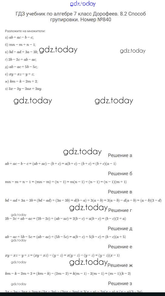 На страницах сайта gdz.today вы найдете учебный и вспомогательный материал, направленный на улучшения знаний школьной программы. ГДЗ - онлайн мир знаний Решение к упражнениям 840 Учебнику по Алгебре для 7 класса Дорофеев, Суворова Просвещение Академический школьный учебник 2020