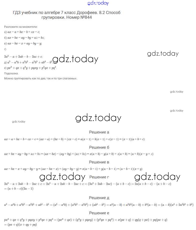 На страницах сайта gdz.today вы найдете учебный и вспомогательный материал, направленный на улучшения знаний школьной программы. ГДЗ - онлайн мир знаний Решение к упражнениям 844 Учебнику по Алгебре для 7 класса Дорофеев, Суворова Просвещение Академический школьный учебник 2020