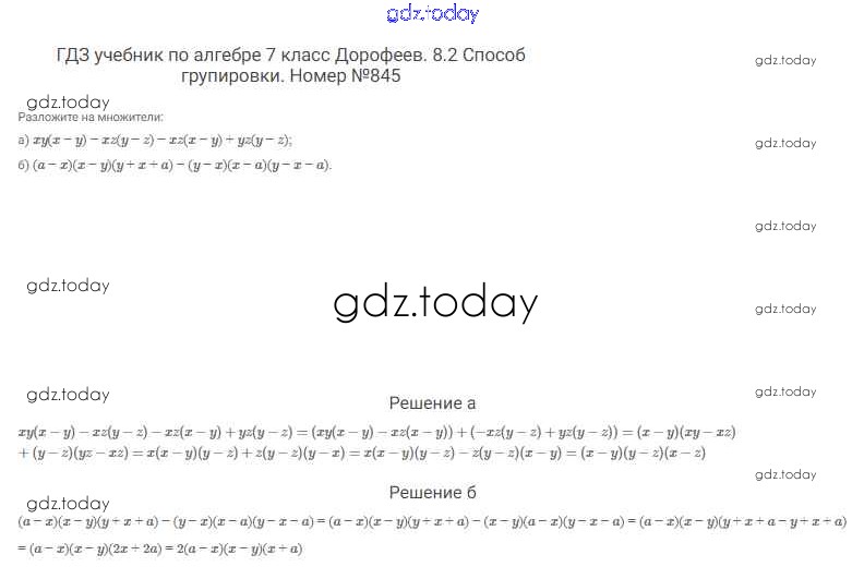 На страницах сайта gdz.today вы найдете учебный и вспомогательный материал, направленный на улучшения знаний школьной программы. ГДЗ - онлайн мир знаний Решение к упражнениям 845 Учебнику по Алгебре для 7 класса Дорофеев, Суворова Просвещение Академический школьный учебник 2020